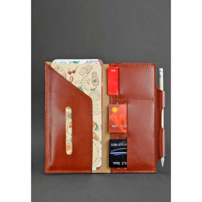 Всередині є відділення під пластикові картки. Також продуманий спеціальний держательдля ручки або олівця.