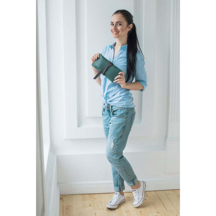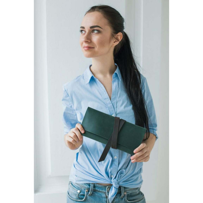Це холдер для документів зручного розміру, в якому помістяться посадочні талони (або залізничні квитки, паспорти, гроші і маса інших корисних речей, які повинні бути завжди під рукою у подорожі. Холдер зроблений повністю вручну з цільного шматка дуже щільною (2 мм) натуральної шкіри. Закривається він на шкіряний хлястик, який кріпиться двома люверсами, за сумісництвом формують тримач для канцелярського приладдя.