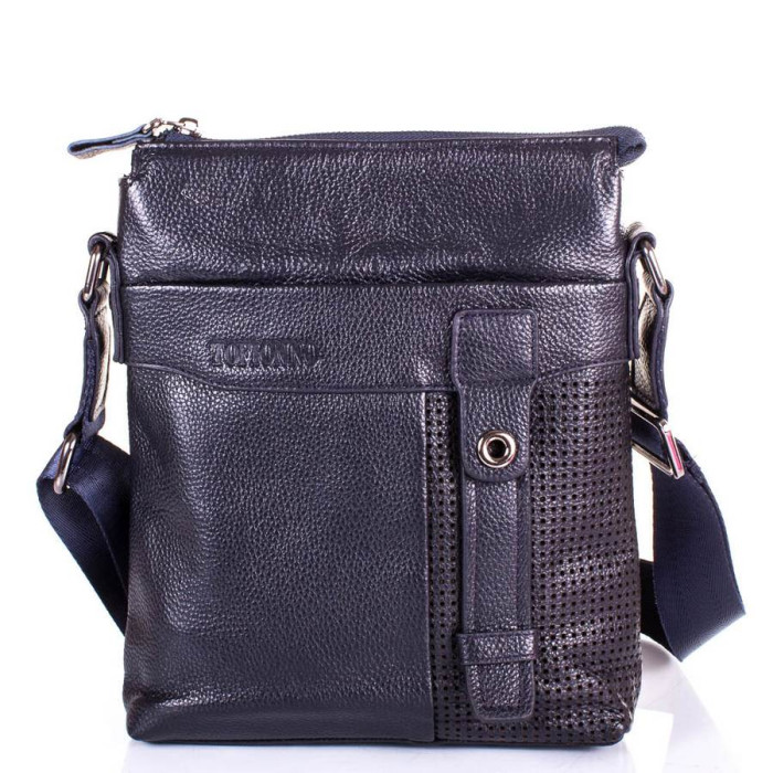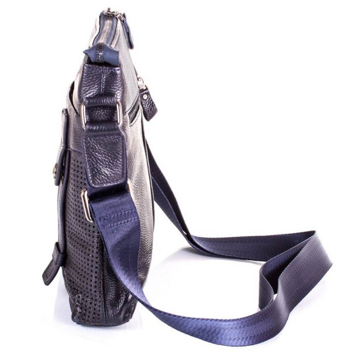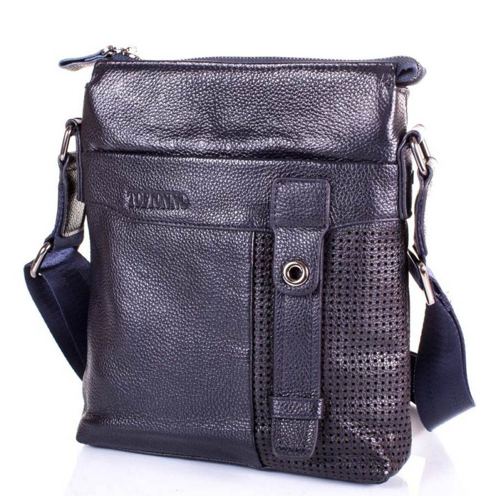 Кількість основних відділень: 1. Сумка має прорізну кишеню на блискавці, 2 кишені для зберігання мобільного телефону. На лицьовій стороні є велика накладна кишеня на магнітній кнопці. З тильного боку розташована прорізна кишеня на блискавки. Модель має незнімний плечовий ремінь регульованої довжини (максимально - 150 см). Аксесуар придатний для носіння на плечі і через плече. Дно сумки ущільнене. Матеріал підкладки: щільна тканина. Матеріал виробу: шкіра. Колір синій. Колір фурнітури: чорне срібло. Розміри (X * Y * Z): 22 * 26,5 * 5 см. Виріб закривається за допомогою блискавки. Документи формату А4 не поміщаються в аксесуар. Виріб упаковано в тканинну сумку, а також в поліетиленовий пакет. Країна походження ТМ TOFIONNO, а також країна-виробник - Китай. Гарантія: 3 місяці.