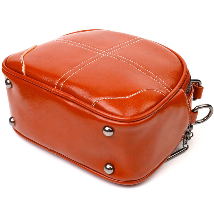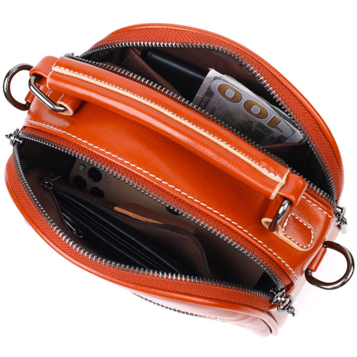 Чудова каркасна сумка із натуральної шкіри високої якості. Виріб дуже зручний, можна носити на плечі, через плече, в руці. Модель доповнена фурнітурою кольору темного срібла, а також прошита білою строчкою для декору. Аксесуар має два основні відділення на блискавках, в яких по кишеньці - одна на блискавці та одна відкритого типу, а також кишеня на блискавці зовні, на тильній стороні. Модель закривається на блискавку.