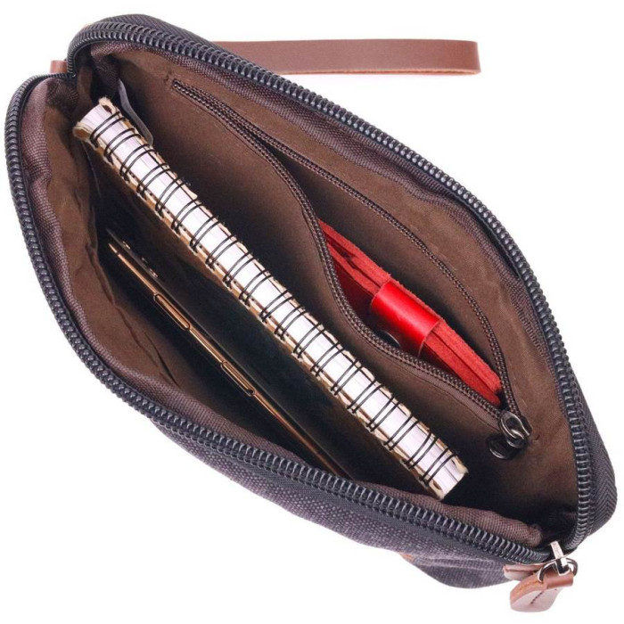 Сучасна текстильна барсетка в чорному кольорі має класичний і зручний дизайн з практичним функціоналом. Аксесуар має одне основне відділення, дві внутрішні кишені, одна з яких на блискавці, ущільнена одна стінка, знімний кистьовий ремінь. У барсетку поміститься чимало речей, а наявність кишень допоможе вам ідеально їх розкласти. У поєднанні з якісною фурнітурою та міцною підкладкою барсетка прослужить Вам не один рік. Виріб стане чудовим подарунком для будь-якого чоловіка.