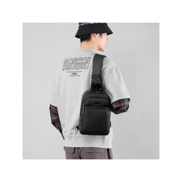 Чоловіча сумка слінг Confident ATN01-T-X1353A пошита із м'якого текстилю у чорному кольорі.