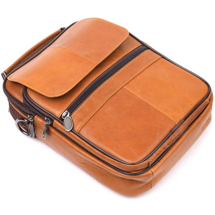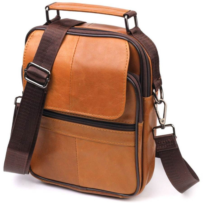 Практична чоловіча сумка середнього розміру із натуральної шкіри. Модель ідеально підійде на щодня. У сумку з легкістю помістяться всі необхідні речі. З такою сумкою зручно ходити на роботу або зустрічі. Доповнено виріб якісною фурнітурою, темно-срібного кольору. Сумка стане чудовим подарунком для близької людини.