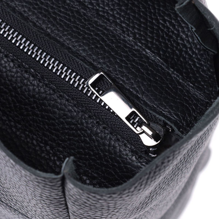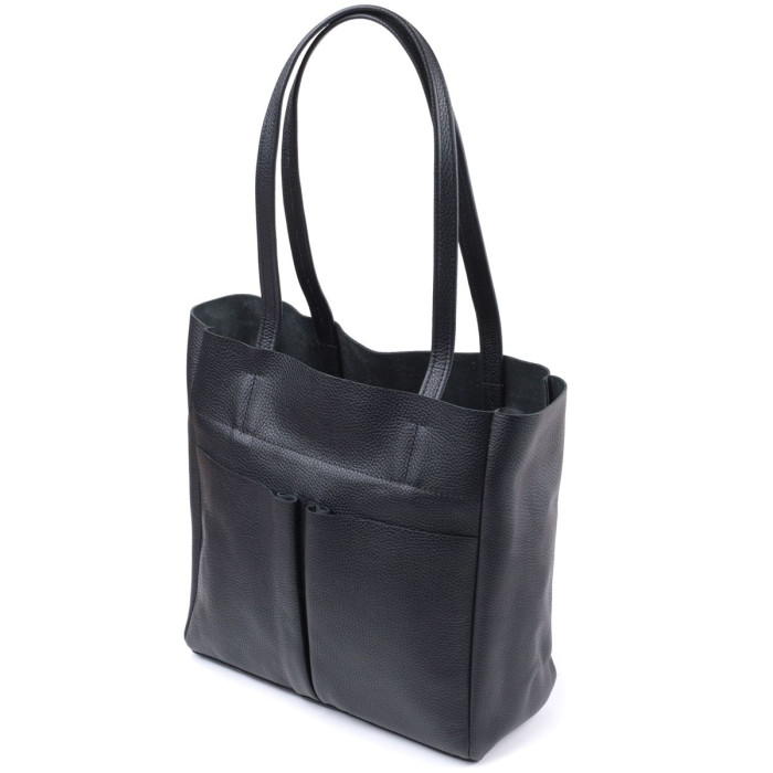 Функціональна жіноча сумка для тих, хто завжди носить із собою величезну кількість речей. Таку сумку можна спокійно носити на роботу, в неї добре поміщаються всі особисті речі і папки з документами. Також таку модель зручно брати із собою у подорожі та виглядати завжди стильним та елегантним. Колір моделі – чорний, фактура – зерниста. Матеріал виконання – натуральна шкіра з високими показниками стійкості до зношування. Для перенесення використовуються дві міцні надійні ручки. Сумка має знімне ущільнене дно прямокутної форми, щоб надати за бажанням більш чітких форм аксесуару. Фурнітура срібного кольору – стійка не змінює свій колір у процесі носіння. Аксесуар чудово поєднується з усіма стилями в одязі та може стати чудовим подарунком на будь-яке свято.