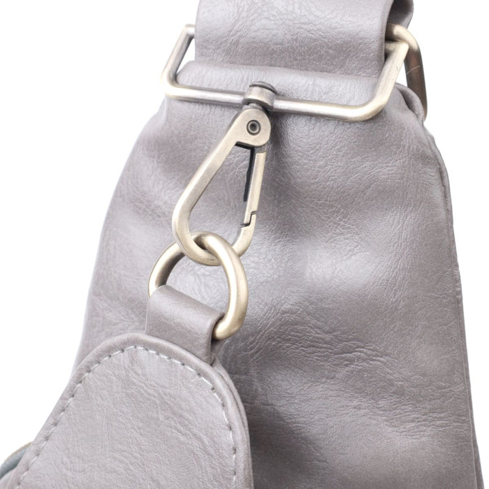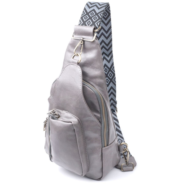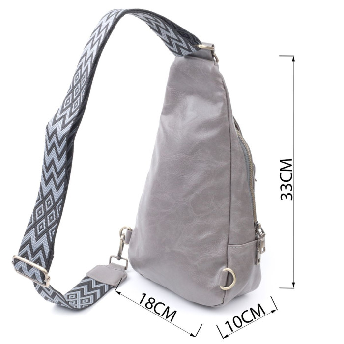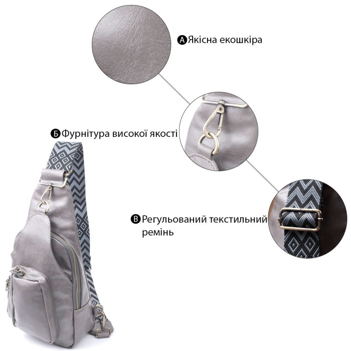 Стильна слінг сумка для жінок з красивою фактурною екошкірою. Дана модель складається з одного основного відділення, яке закривається на блискавку і в якому знаходиться дві кишені відкритого типу всередині, а також двох кишень зовні та одного отвору для кабелю або навушників, що дуже зручно в сучасному світі. Акцентом даної моделі є зручний регульований плечовий ремінець у етнічному стилі, що дуже модно вже кілька сезонів. Екошкіра – високоякісна альтернатива натуральному матеріалу, яка дуже стійка до тертя, до низьких температур, відмінно носиться на відміну від інших штучних матеріалів, а також має гіпоалергенний склад на відміну від натуральної шкіри. Відмінний варіант сумки, який порадує будь-яку дівчину, тому що всі речі під рукою та в безпеці.