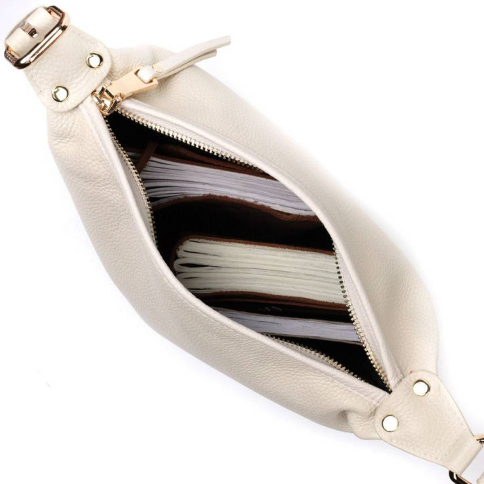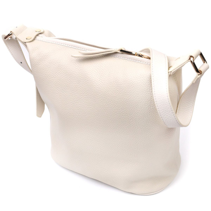 Вертикальна сумка жіноча з твердим дном з натуральної м'якої шкіри, яка дуже добре показала себе в експлуатації. Аксесуар складається з основного відділення, потайної кишені на блискавці та кишені відкритого типу. Носити сумку можна на плечі та через плече, для цього є шкіряний незнімний регульований ремінь. У виробі використано якісну фурнітуру кольору жовтого золота. Чудовий варіант сумки на кожен день.