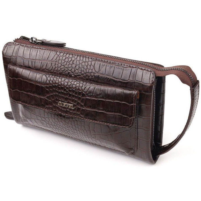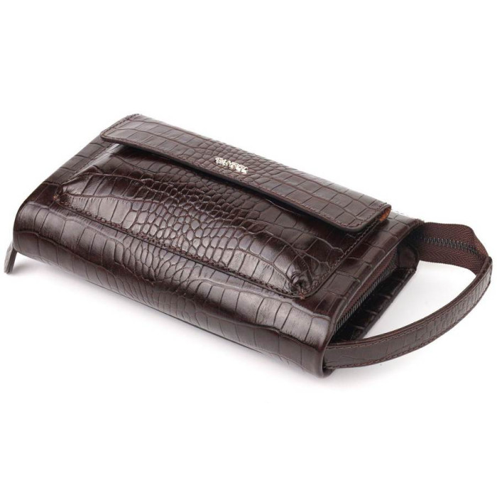 Цікавий місткий клатч для чоловіків з натуральної якісної шкіри з тисненням під крокодила. Аксесуар має одне основне відділення, всередині якого дві бічні кишені, одна з них на блискавці та кишеня-перегородка на блискавці. Зовні у виробі розташовані дві кишені на лицьовій та тильній стороні. Внизу аксесуара є ремінець для носіння на руці, що дуже зручно у використанні, також є незнімна ручка. Чим зручний клатч - у нього Ви можете покласти все необхідне і все буде під рукою.
