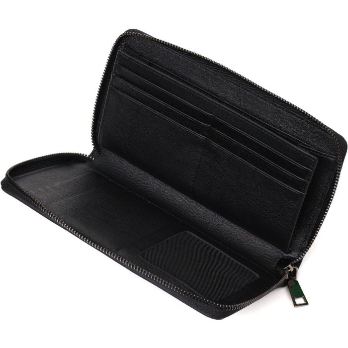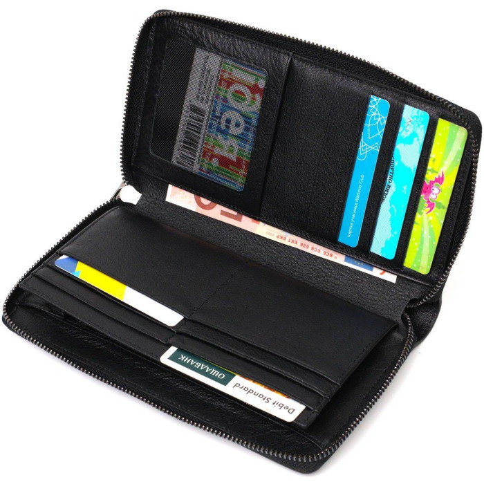 Надійний чоловічий клатч із натуральної м'якої шкіри, гаманець закривається на блискавку, всередині можна без проблем розміщувати паперові банкноти, банківські картки та навіть смартфон. Аксесуар складається з двох відділень для купюр, двох прилеглих кишень, сімнадцяти слотів для кредиток та монетниці на блискавці. Є також ручка долоні на тильній стороні клатчу. Продається гаманець у гарній коробці від виробника. Якісний і надійний клатч - саме такий аксесуар повинен бути у кожної людини, що поважає себе.