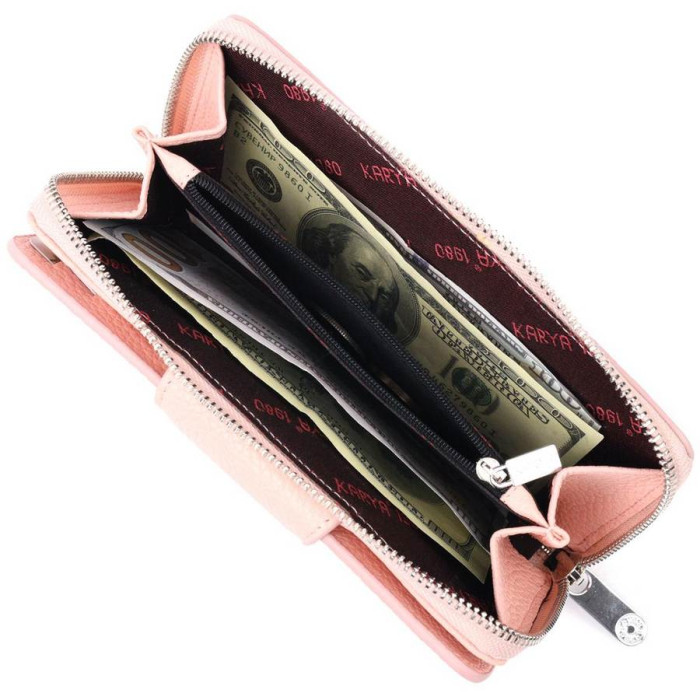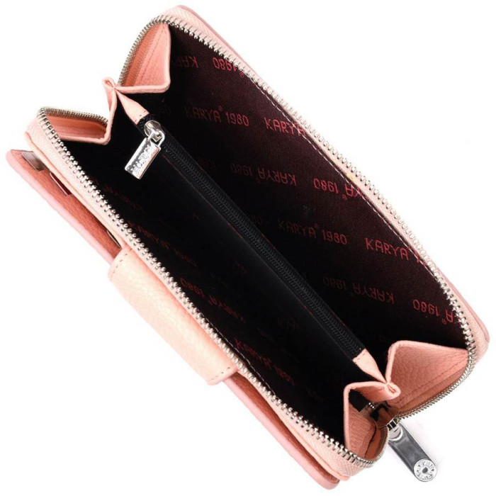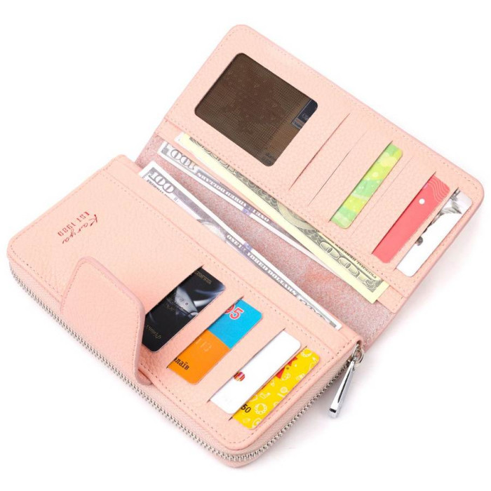 Незвичний жіночий гаманець із якісної натуральної шкіри. Виріб складається з двох частин, перша - для купюр у нескладеному вигляді та монет, що закривається на блискавку, друга для карток та документів, закривається клапаном на магніт. Запакований аксесуар у фірмову коробку та пакет бренду. Вироби з натуральної шкіри завжди будуть чудовим подарунком для близької людини.