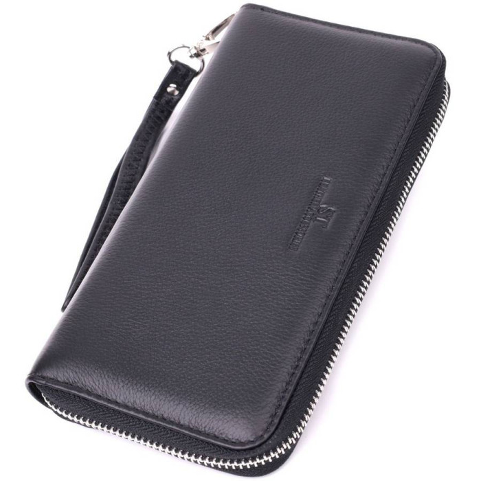 Універсальна шкіряна модель клатча, з тисненням логотипу виробника на лицьовій стороні, яка підійде як чоловікові, так і жінці. Аксесуар має три великі відділення для купюр, вісім осередків для карток, дві прилеглі кишені, одну приховану кишеню та кишеню на блискавці. Носити цю модель зручно в руці за допомогою шкіряної ручки на тильній стороні або за допомогою знімного кистьового ременя. Закривається аксесуар на блискавку. Купуючи шкіряний аксесуар цієї фірми собі або на подарунок, будьте певні, що він радуватиме око не один рік.