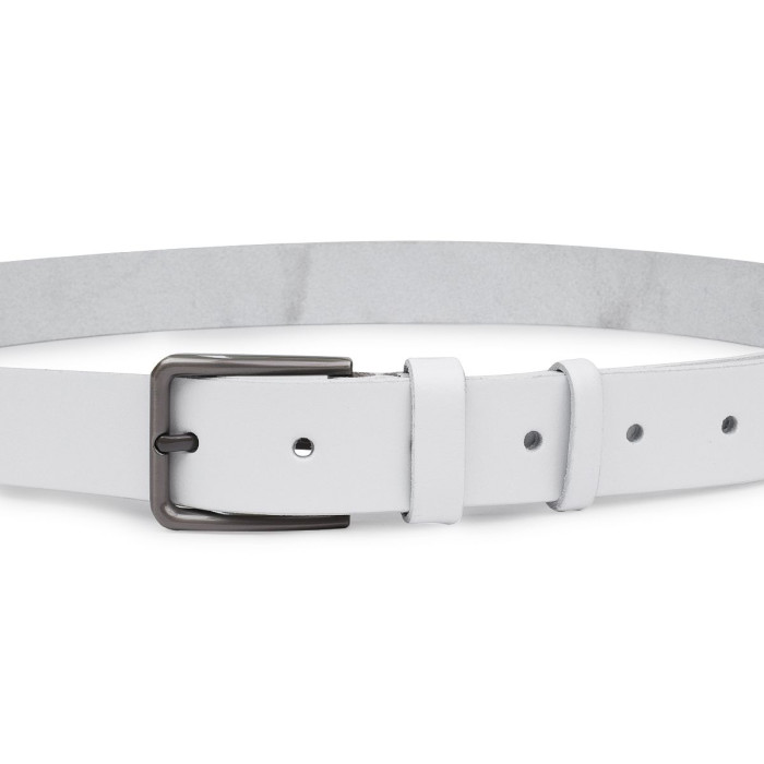 Чудовий ремінь для тих, хто шукає аксесуар білого кольору. Виконано виріб з натуральної високоякісної шкіри з гладкою приємною на дотик фактурою. Пряжка має стандартний строгий дизайн і класичний надійний механізм. Такий ремінь добре підійде під будь-який вид одягу і зробить хороший акцент у Вашому образі.