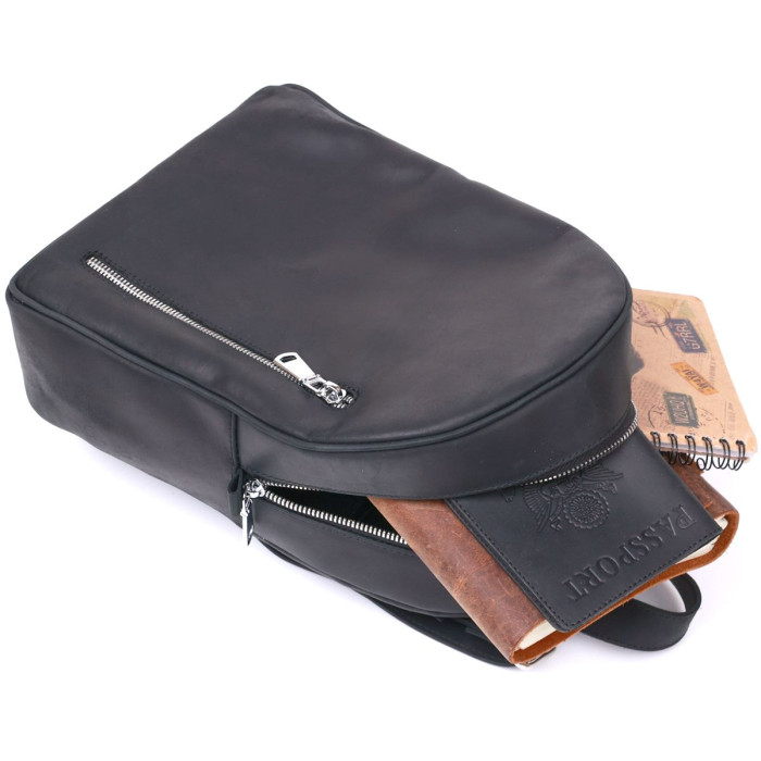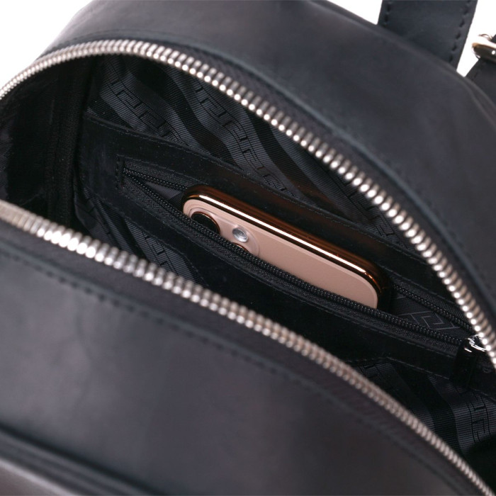 Чудовий жіночий рюкзак у вінтажному стилі для повсякденного використання від українського виробника. Виконано цю модель з натуральної висококласної шкіри з відмінними характеристиками. Колір виробу - універсальний чорний, гладка фактура матова. Шлейки регулюються по довжині і виконані з натуральної шкіри.