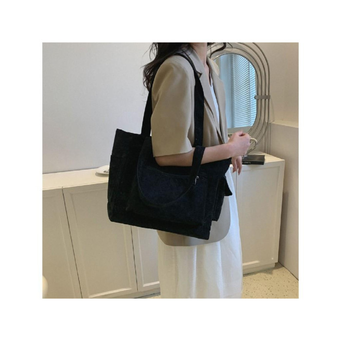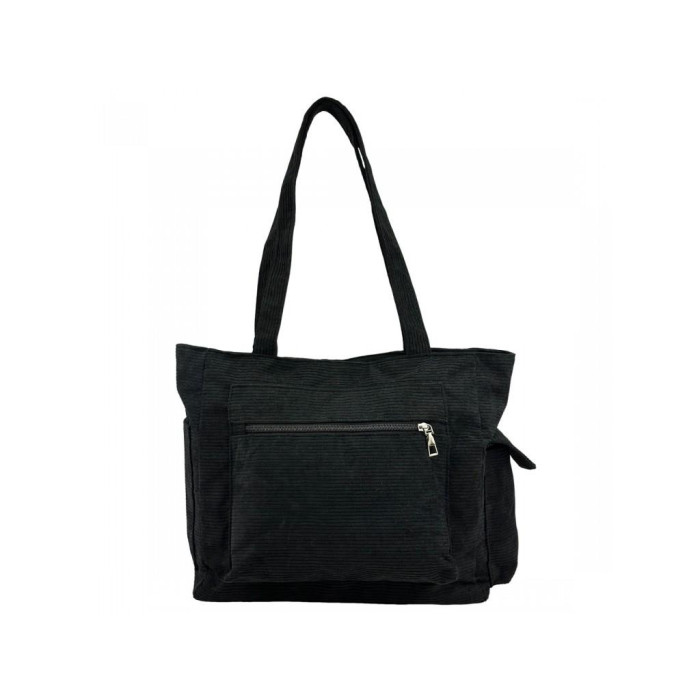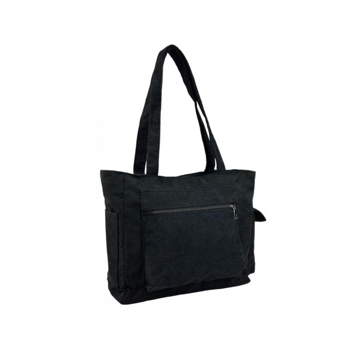 Вельветовий місткий чорний шоппер Lilly P2-1468A