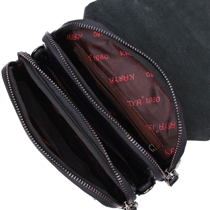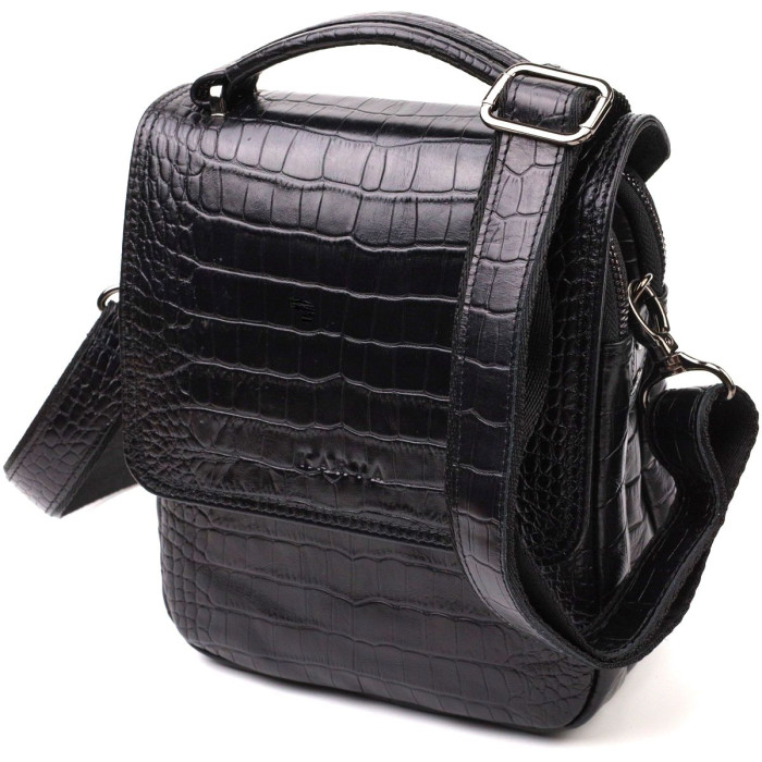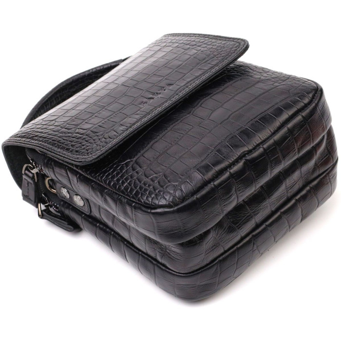 Якісна шкіряна сумка на плече із натуральної шкіри високої якості з тисненням під крокодила. Виріб закривається на клапан та блискавку, що забезпечує подвійний захист ваших речей. Модель доповнена знімним плечовим ременем зі шкіряною вставкою та доповнена якісною сріблястою фурнітурою. Прекрасна модель сумки на кожен день.