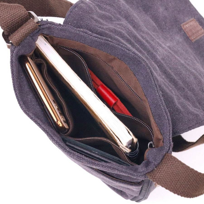 Компактна чоловіча сумка із міцного текстилю. Аксесуар має одне основне відділення, три внутрішні кишені різних розмірів, одна з яких на блискавці і три зовнішні кишені, дві з яких на блискавці. Сумка має розширювач на блискавці, щоб більше ваших речей помістилося, а наявність кишень допоможе вам ідеально їх розкласти. Сумка чудово поєднується зі стилем кежуал, а також мілітарі. Модель дуже практична та універсальна. Виріб стане чудовим подарунком для будь-якого чоловіка.