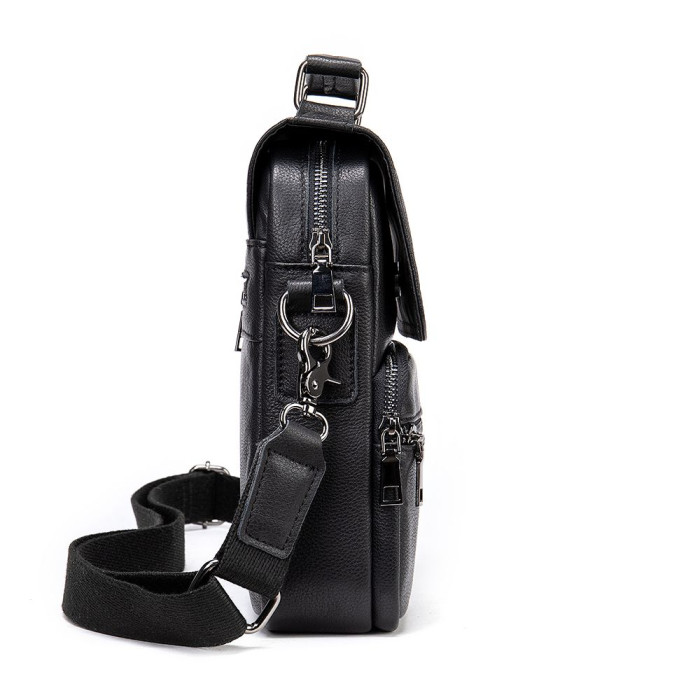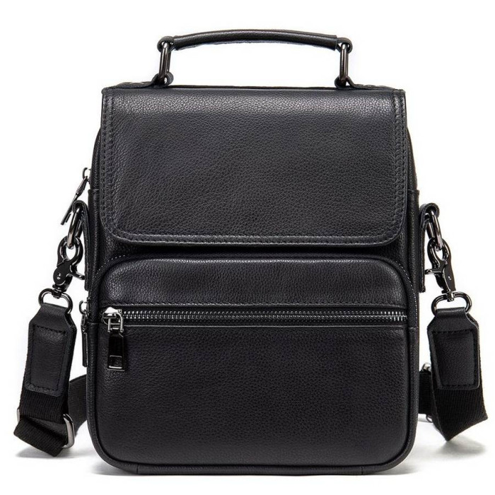Вертикальна сумка з м'якої шкіри для чоловіків. Виріб стане просто знахідкою для чоловіків. Дизайн сумки продуманий до дрібниць і виглядає дуже солідно і стильно. Сумка доповнена якісною фурнітурою. Доповнена модель текстильним регульованим ремінцем. Закривається на блискавку і клапан. Сумка буде відмінним подарунком для близької людини.