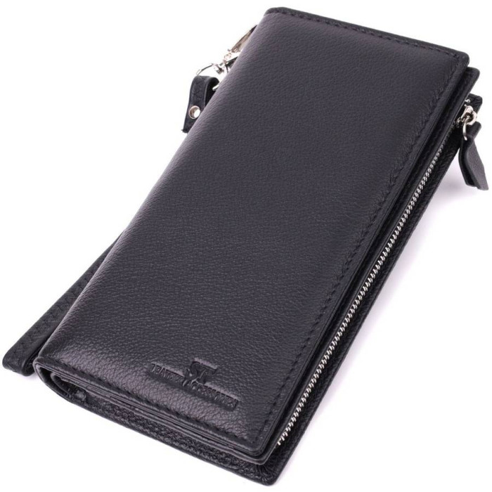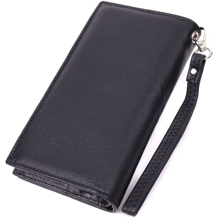 Місткий гаманець-клатч унісекс, в який легко вміщується телефон. Особливістю моделі є те, що її можна носити на кисті, для цього передбачений шкіряний кистьовий ремінь, що знімається. Аксесуар виконаний із гладкої шкіри високої якості. З таким клатчем Ви проходите не один рік. Дуже комфортний у використанні. Модель упакована в коробочку, що дуже зручно, якщо виріб призначений для подарунка.