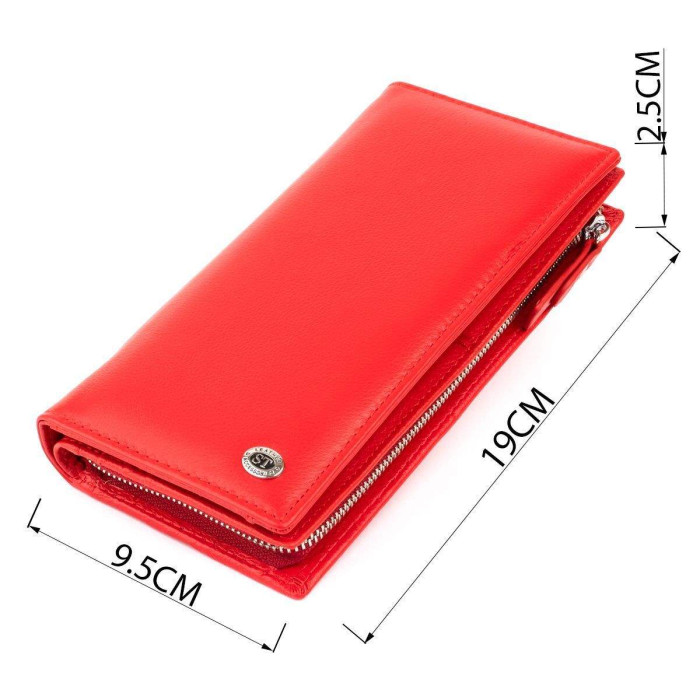 Яскравий червоний гаманець вертикального типу з натуральної шкіри. Модель складається з двох автономних частин: перша для кредиток, друга для купюр і монет. Перша частина гаманця закривається магнітами, а друга - блискавкою. Виріб прослужить вам далеко не один рік. Модель має витончену текстуру шкіри. Дуже м'яка і приємна на дотик. Гаманець зручно носити на зап'ясті або в дамській сумочці. Виріб буде ідеальним подарунком для будь-якої дівчини. У комплекті йде фірмова картонна коробка, а значить, вам не доведеться морочитися над упаковкою подарунка.