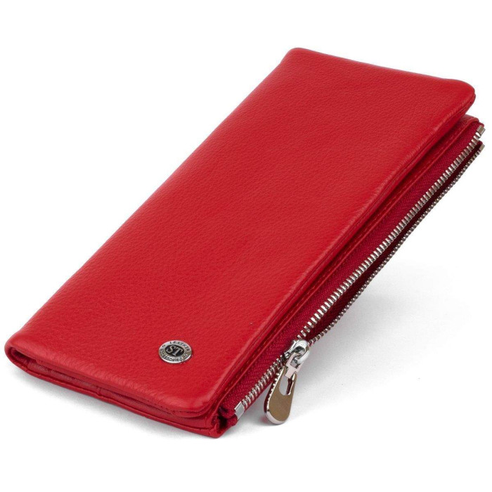 Гаманець вертикального типу з нової колекції. Колір - яскравий червоний. Виріб підійде для шанувальників яскравих аксесуарів. Матеріал виготовлення натуральна 100% шкіра. Усередині аксесуар має 3 кишені для купюр в розгорнутому вигляді, 12 слотів під пластикові картки. Зовні - бокова кишеня на блискавці, в який поміститься мобільний телефон невеликого розміру. Гаманець підкреслить ваше почуття стилю і відмінний смак. Зручно сидить в руці і прослужить вам далеко не один рік. Рекомендуємо вам дану модель в якості подарунка. У комплекті до гаманця йде фірмова коробка.
