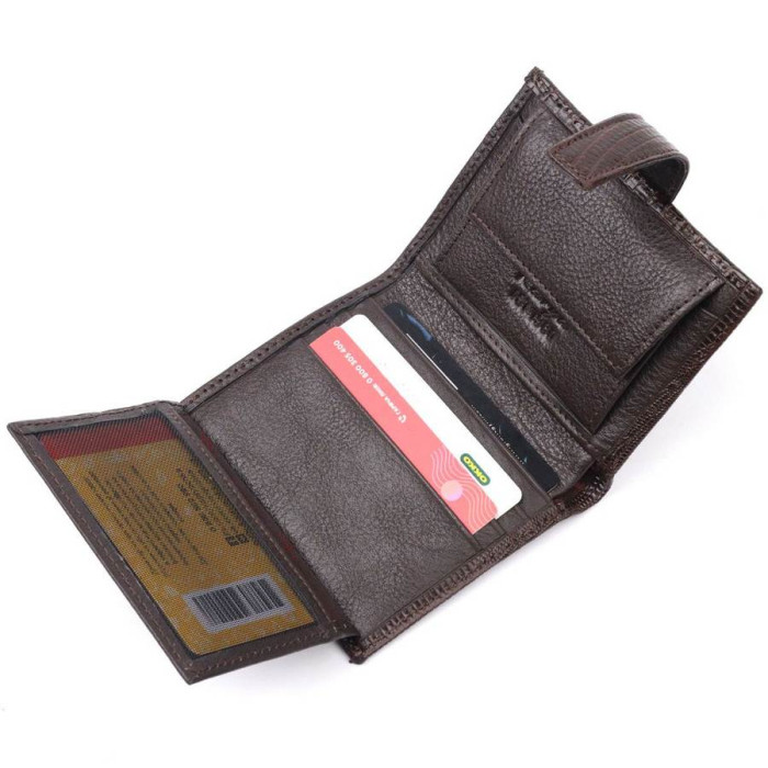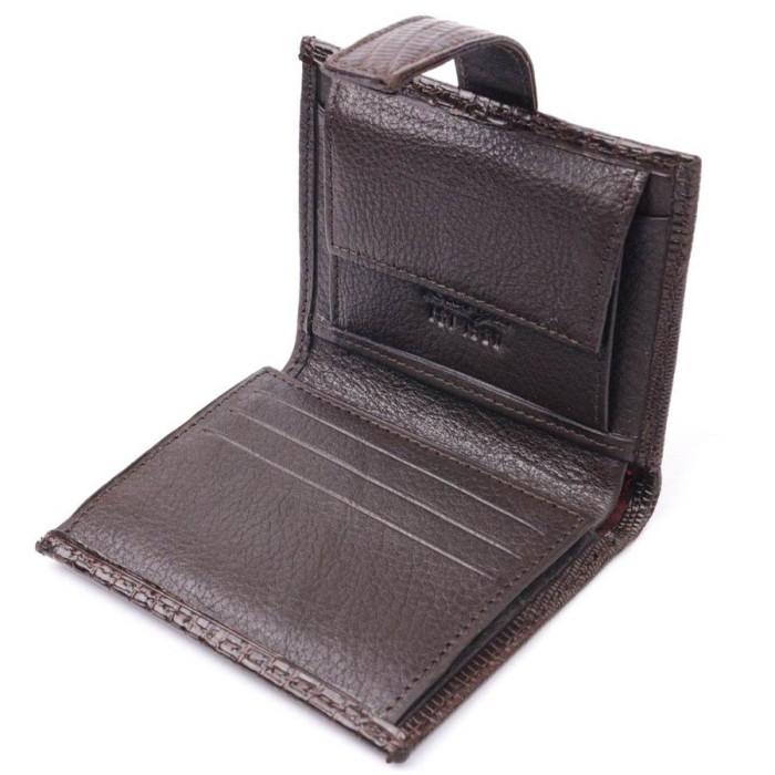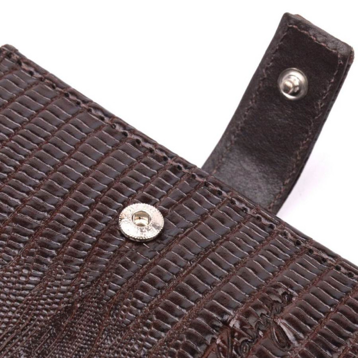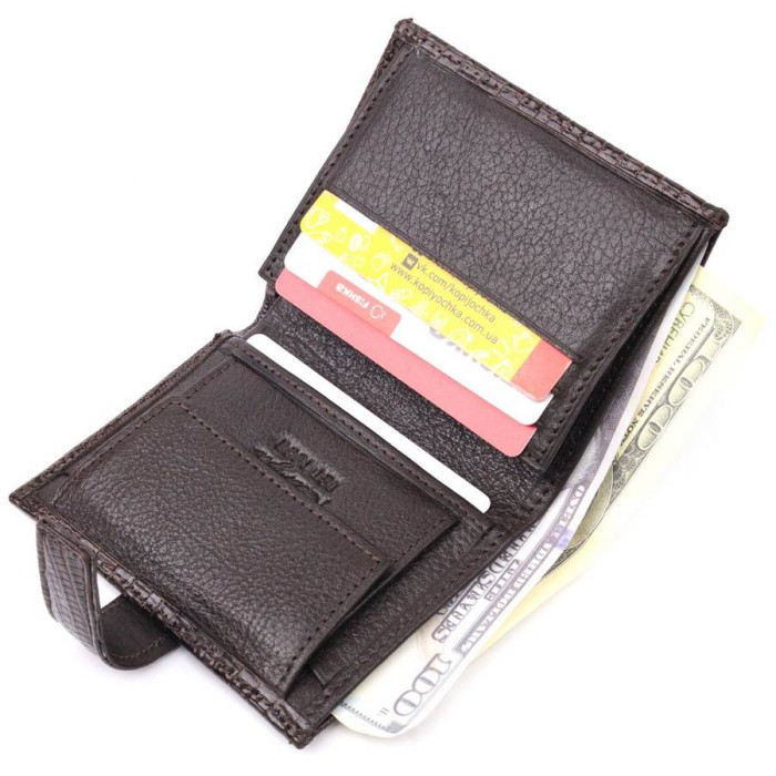 Відмінний гаманець з натуральної фактурної лакованої шкіри. Модель вертикального типу складається навпіл і закривається хлястиком на кнопку. Лаконічний дизайн, відмінно лягає в руку, поміщається в кишеню, також в будь-яку сумку. Шкіра преміум класу, приємна на дотик. Відмінна ідея для подарунка близькій людині.