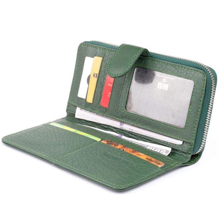 Місткий гаманець для чоловіків і жінок благородного зеленого кольору. Аксесуар в такому кольорі притягує гроші. Виріб виглядає дуже стильно і не дивлячись на свій здавалося б громіздкий розмір зручно лежить в руці. Аксесуар доповнено достатньою кількістю осередків для кредиток. Гаманець здатний замінити вам кредитницю. Таким чином, купуючи один аксесуар ви отримуєте по функціональності навіть 2 аксесуара: гаманець і візитницю. Рекомендуємо вам дану модель, якщо ви перебуваєте в пошуку подарунка. На нашому сайті аксесуар доступний в різних кольорах.