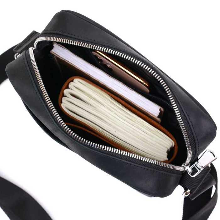 Універсальна чоловіча сумка через плече від українського виробника у строгому лаконічному дизайні. Має стандартні розміри, тому в ній легко поміститься все потрібне. Виконано модель з натуральної шкіри високої якості та міцності. Основне відділення закривається на блискавку, на зовнішній стороні є містка кишеня на магніті.