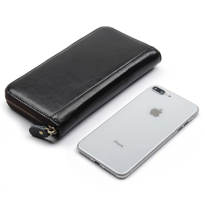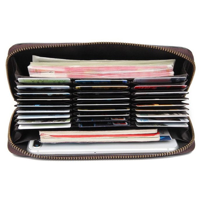 Дуже вмістка шкіряна візитниця, яка закривається блискавкою. Крім візиток в даний аксесуар може з легкістю поміститися мобільний телефон, а також безліч купюр. Візитницю дуже зручно тримати в одній руці.