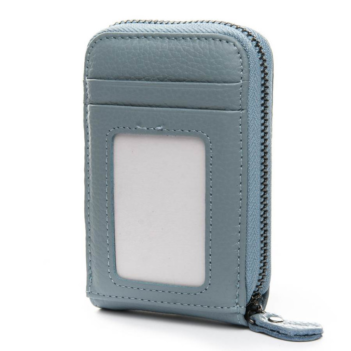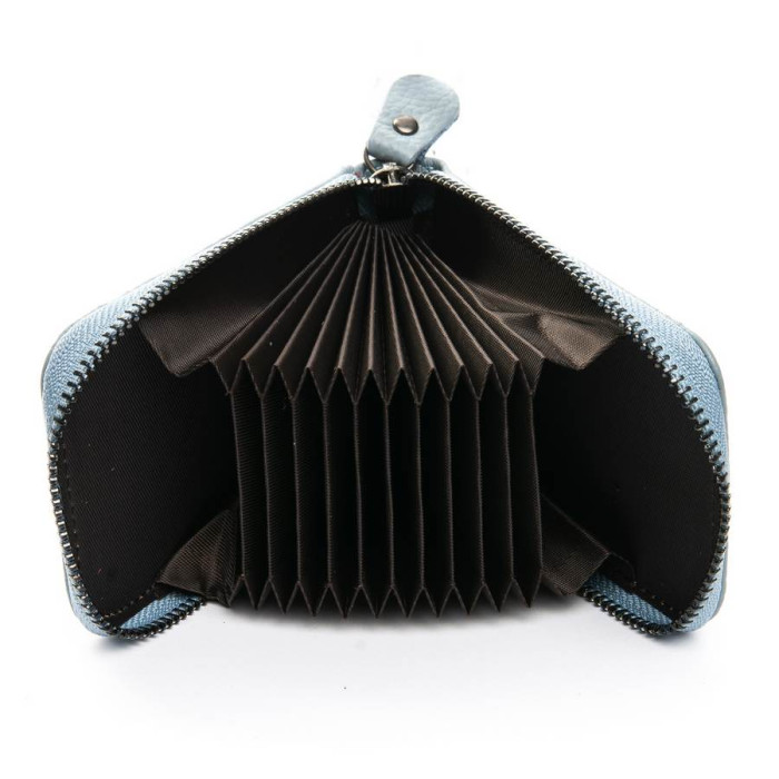 Жіноча візитниця, виготовлена з натуральної шкіри. Закривається на блискавку. Усередині знаходяться 12 відділень для візитних карток. Зовні візитниці є дві відкритих кишені, одна з яких виконана прозорою. Розмір (см) 11,5*7,5*3