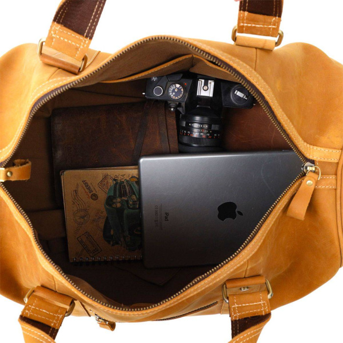 Велика чоловіча сумка із натуральної вінтажної шкіри, сучасна та продумана модель. Ідеальний помічник у будь-яку подорож. Всередині аксесуара щільна текстильна підкладка коричневого кольору. Аксесуар доповнений не знімним текстильним регульованим ремінцем. Виробництво фабричний Китай гарної якості. Шкіряні сумки часто носяться набагато довше, ніж моделі із замінника або тканинні. Аксесуар доповнений якісною фурнітурою золотистого кольору із міцного металу. Буде чудовим подарунком з будь-якого приводу.