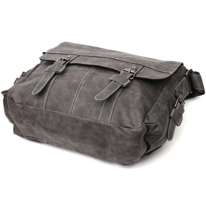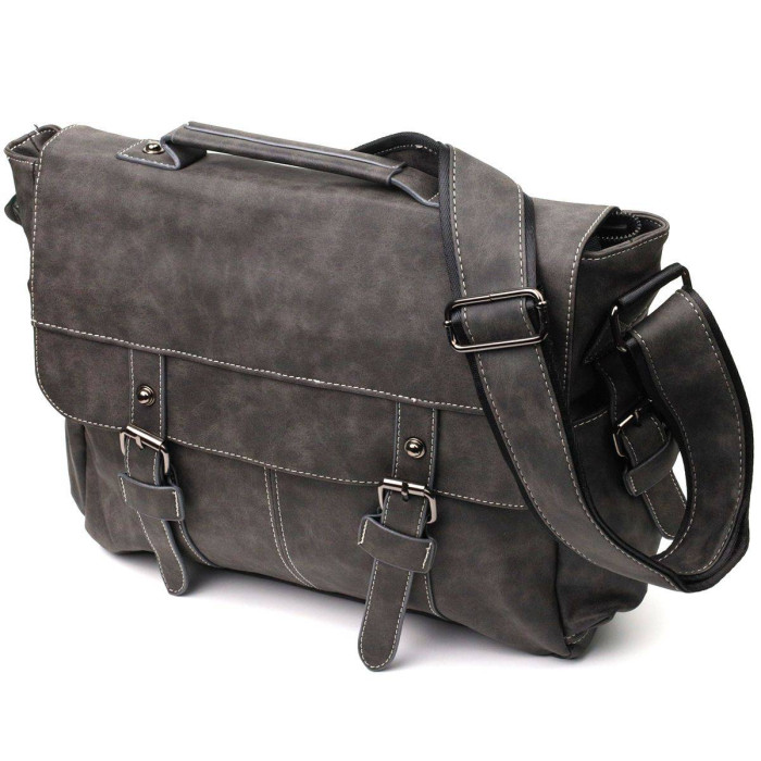 Практична сумка з високоякісного шкірозамінника за приємною ціною для чоловіків будь-якого віку. Дана модель може похвалитися своєю місткістю та практичністю. Безліч кишень дозволяють розкласти весь вміст на свої місця, що дуже зручно. Колір сумки – сірий, поверхня – матова і дуже приємна на дотик. Така сумка стане просто незамінним супутником свого власника.