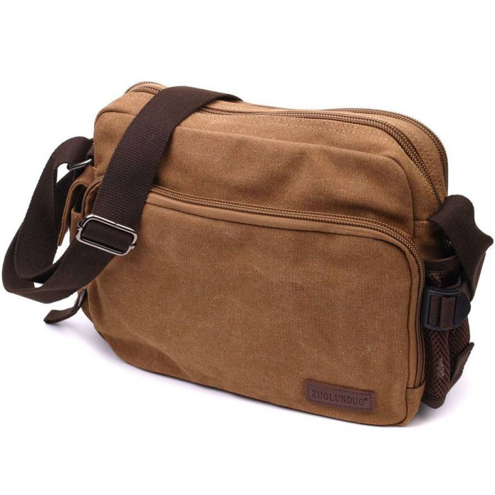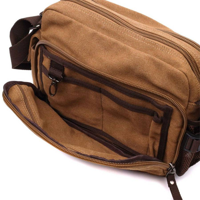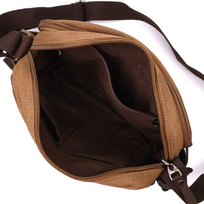 Практична чоловіча сумка із добротного текстилю, на три відділення. Виріб має більш ніж достатню кількість різних кишень, якісну фурнітуру та надійний текстильний регульований плечовий ремінь. Сумку можна носити на плечі та через плече, вона дуже легка та зручна. Така сумка буде ідеальним варіантом для кожного дня. Модель дійсно дуже практична та універсальна.