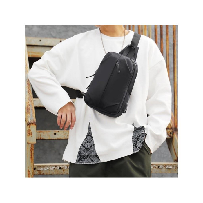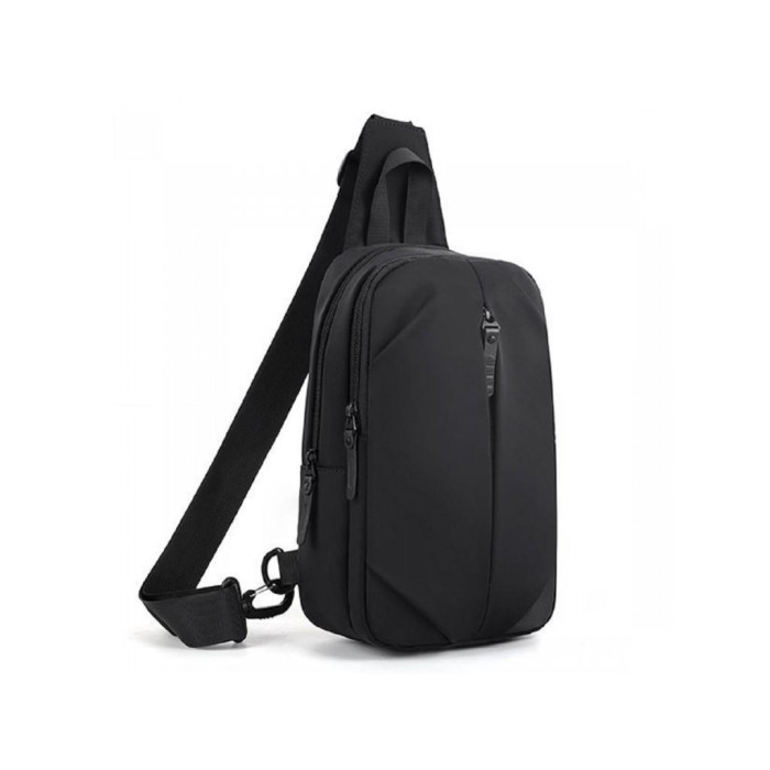 Чоловіча сумка слінг Confident ATN01-T-L22804A пошита із вологостійкого текстилю у чорному кольорі.