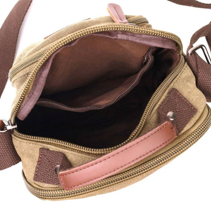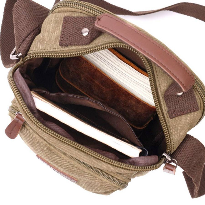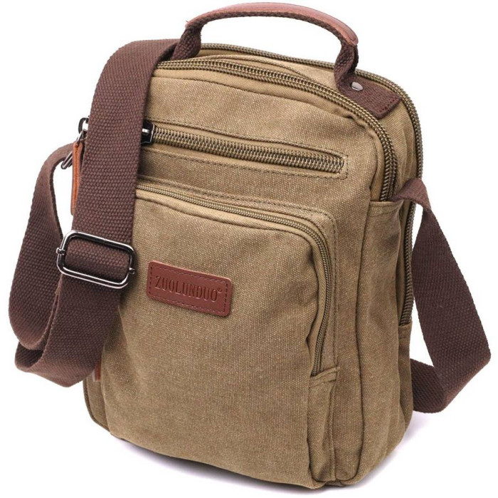 Добротна чоловіча сумка із якісного щільного текстилю. Аксесуар має два основних відділення, внутрішні дві кишені на блискавці, та відкритого типу, і три зовнішні кишені на блискавках, різних розмірів. Сумку можна носити в руці, на плечі та через плече. У поєднанні з якісною фурнітурою та міцною підкладкою сумка прослужить Вам не один рік. Виріб стане чудовим подарунком для будь-якого чоловіка.