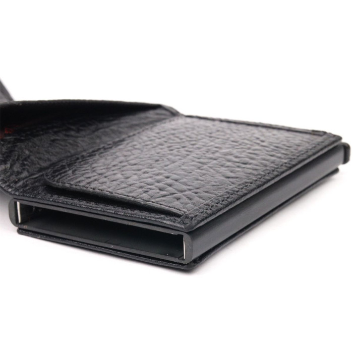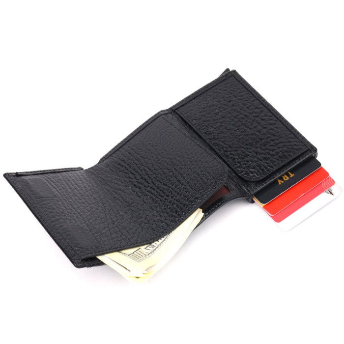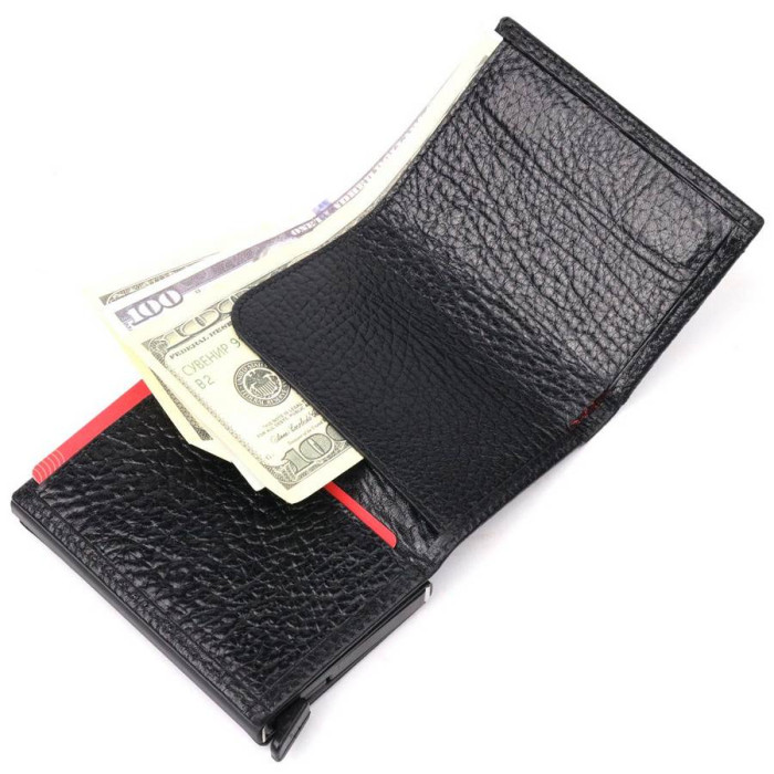 Надійний картхолдер з натуральної шкіри, призначений для зберігання банківських та дисконтних карток та невеликої кількості готівки. Має лаконічний дизайн, відмінно лягає в руку, поміщається в кишеню, а також будь-яку сумку. Шкіра м'яка, приємна на дотик. Механізм працює надійно та зручний у використанні; картки добре закріплені в аксесуарі. Відмінна ідея для подарунка близькій людині.