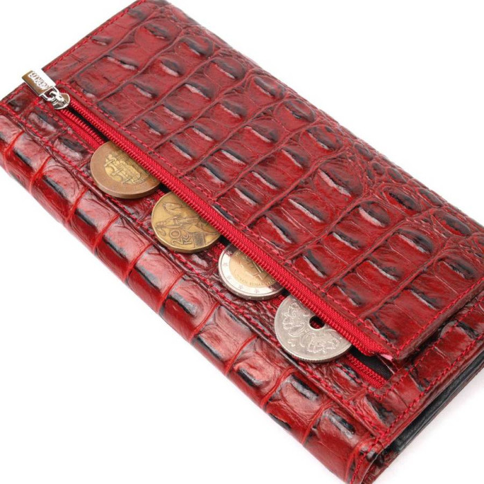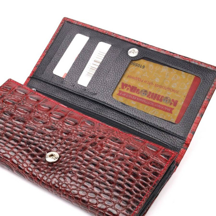 Стильний жіночий гаманець із натуральної шкіри, з тисненням під крокодила. Складається аксесуар навпіл, закривається клапаном на кнопку. Якісна фурнітура доповнює та прикрашає виріб. Такий гаманець з натуральної шкіри - це ідеальний варіант на кожен день для тих, хто цінує якість, зручність та комфорт, а також чудово доповнюватиме Ваш повсякденний образ. Запакований аксесуар у фірмову коробку та пакет бренду. Вироби з натуральної шкіри завжди будуть чудовим подарунком для близької людини.
