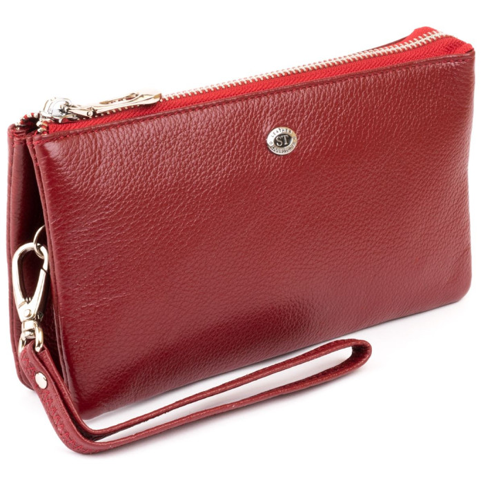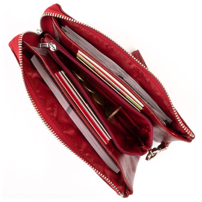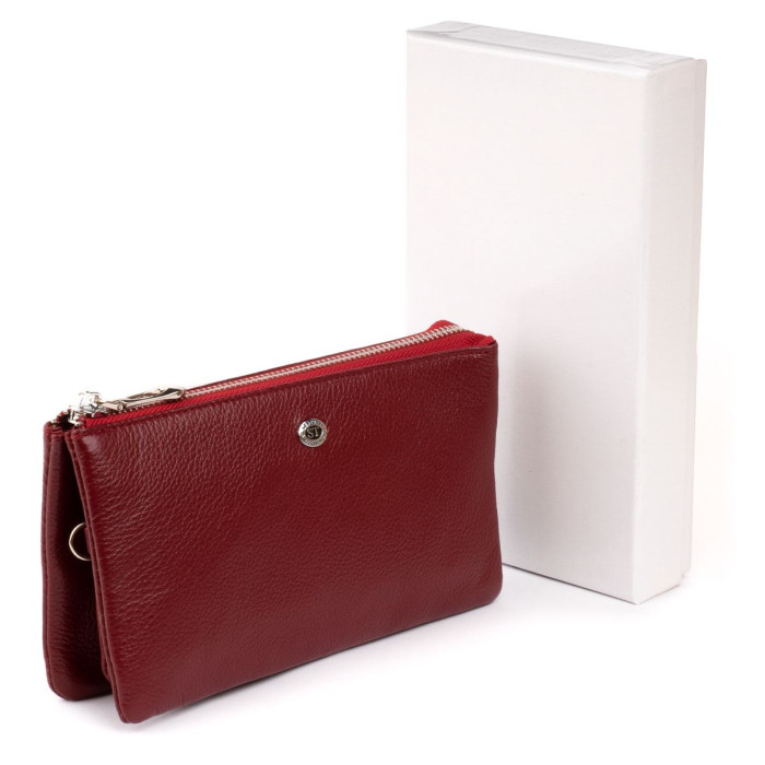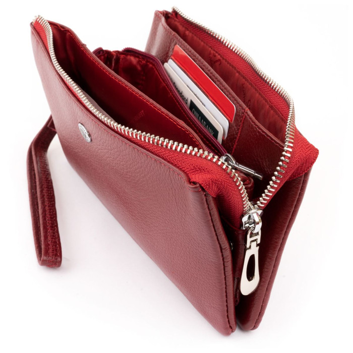 Строгий жіночий клатч з натуральної шкіри благородного бордового кольору. Модель надає впевненості вашому образу. Виріб має дві містких кишені на блискавці і кишеньку перегородку на блискавці. Модель досить універсальна і вмістить навіть мобільний телефон і паспорт. На дотик м'яка і приємна. Має слабо виражений запах натуральної шкіри. Внутрішнє оздоблення - текстиль і натуральна шкіра. Клатч не займе багато місця у вашій сумочці або ви також можете носити його на зап'ясті. Виріб упаковано в фірмову коробку з логотипом білого кольору.