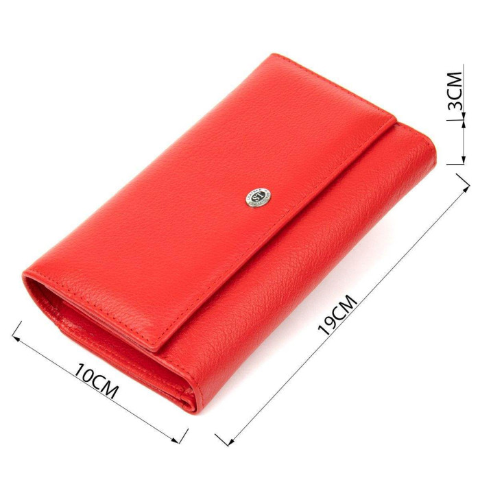 Гарний гаманець для яскравих жінок в насиченому червоному кольорі. Має матову зернисту фактуру, яка дуже приємна на дотик, що важливо при повсякденному використанні. Всередині є всі необхідні відділення та кишені для Вашої зручності. Якість виконання виробу на дуже високому рівні. Дана модель стане відмінним подарунком для коханої жінки, подруги або мами.