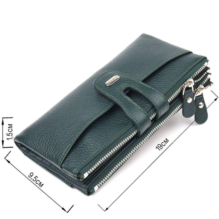 Функціональний жіночий гаманець із натуральної зернистої шкіри. Аксесуар має два широкі основні відділення, в які поміщаються купюри всіх номіналів, дві монетниці, двадцять чотири кишені для карток, дві відкриті кишені зовні та одне прозоре віконце для документів. Закривається аксесуар хлястиком на кнопку. Якщо Ви хочете порадувати себе та здивувати близьких, то неодмінно купуйте шкіряні аксесуари в нашому магазині, якість і ціна Вас однозначно порадує.