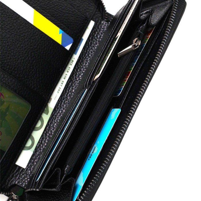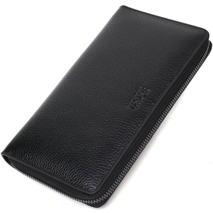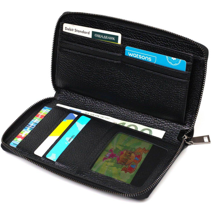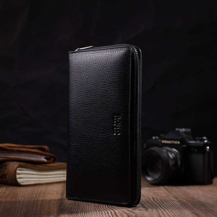 Практичний чоловічий клатч із натуральної м'якої шкіри, гаманець закривається на блискавку, всередині можна без проблем розміщувати паперові банкноти, банківські картки та навіть смартфон. Аксесуар складається з двох відділень для купюр, двох прилеглих кишень, сімнадцяти слотів для кредиток та монетниці на блискавці. Є також ручка долоні на тильній стороні клатчу. Продається гаманець у гарній коробці від виробника. Якісний і надійний клатч - саме такий аксесуар повинен бути у кожної людини, що поважає себе.