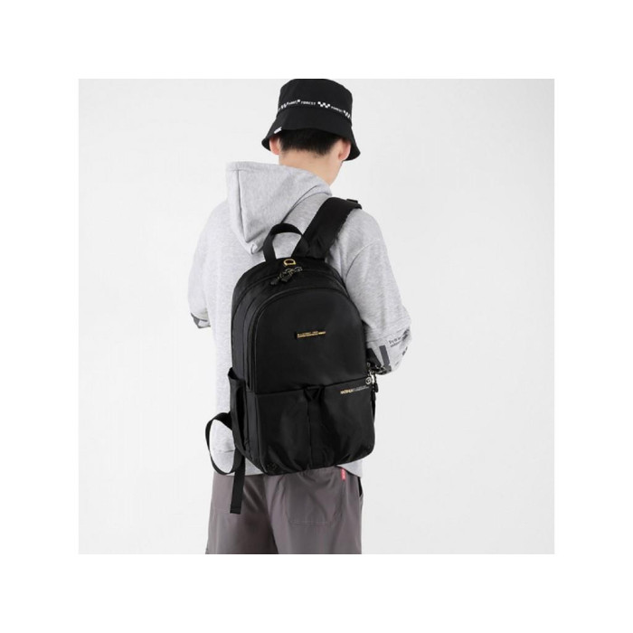 Рюкзак зроблений з міцної чорної тканини, ідеально підходить для подорожей і міста.
