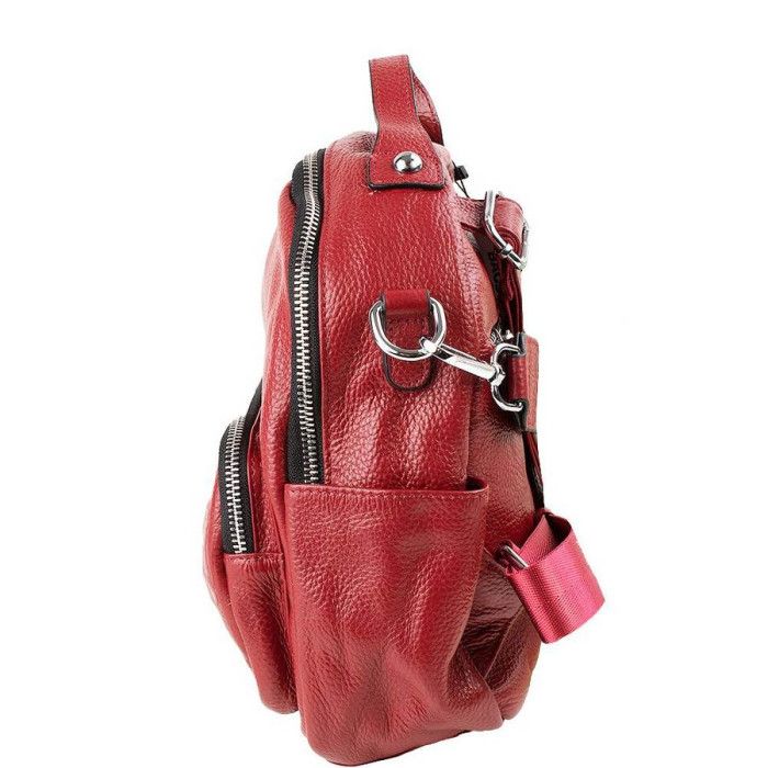 Розміри:20,5 х 25 х 9 см. Матеріал виробу:шкіра. Матеріал підкладки:тканина. Колір:бордовий. Колір фурнітури:чорне срібло. Кількість основних відділень:2. Всередині є 1 прорізна кишеня на блискавці, 1 накладна і кишеня-перегородка на блискавці. На лицьовій стороні розташована накладна кишеня на блискавці. На тильній стороні розташована прорізна кишеня на блискавці. В комплект входять до виробу знімний плечовий ремінь, довжина якого не регулюється і становить 80 см. Довжина плечових лямок регулюється за допомогою металевих пряжок. Рюкзак має ручку для перенесення в руці. Аксесуар придатний для носіння на плечі, на спині, через плече. Сумка закривається за допомогою блискавки. Документи формату А4 не поміщаються у виробі. Виріб упаковано в поліетиленовий пакет. Країна походження торгової марки Vito Torelli, а також країна-виробник - Україна. Гарантія: 3 місяці.