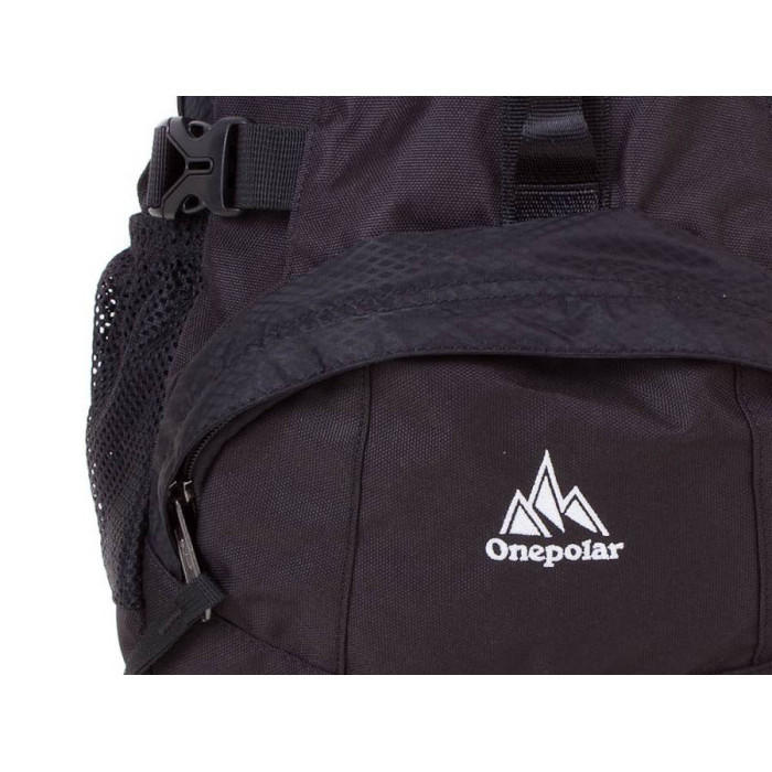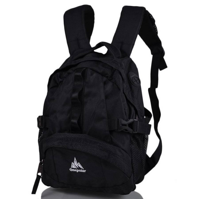 Повністю вентильована і зручна м'яка спинка, м'які плечові лямки створюють додатковий комфорт при носінні. Система циркуляції повітря Air. На лицьовій стороні рюкзака є накладна кишеня на блискавці, який має: два накладних кармашка, одна кишеня на блискавці, два відділення для кулькових ручок карабін для ключів. Всередині рюкзака є одне відділення і кишеню на блискавці. По боках вироби є накладні кишені-сітка на гумці для аксесуарів або пляшки з водою. Збоку рюкзак має вихід для навушників, тепер у Вашої дитини є можливість слухати музику в той час як плеєр добре захищений в спеціальній кишені рюкзака. Для зручності основні відділення рюкзака закриваються двосторонніми блискавками. Виріб має регульовану грудну стяжку з зручним фіксатором. На шлеї рюкзака є зручний кишенька для мобільного телефону. Матеріал: поліестер, Polyester Oxford Rip stop PU 600D. Колір: чорний. Колір фурнітури: чорне срібло. Фурнітура: Duraflex - високоякісна пластикова фурнітура виробництва одного зі світових лідерів National Molding Corporation (США). Зовнішні розміри рюкзака: 26*36*13 см (ширина дна вказана з урахуванням додаткового відділення). Обсяг: до 20 л. (з урахуванням кишень). Вага: 510 р. Документи формату А4 поміщаються в рюкзак. Рюкзак упакований в поліетиленовий пакет. Гарантія: 2 роки. Країна походження торгової марки: Onepolar (Китай).