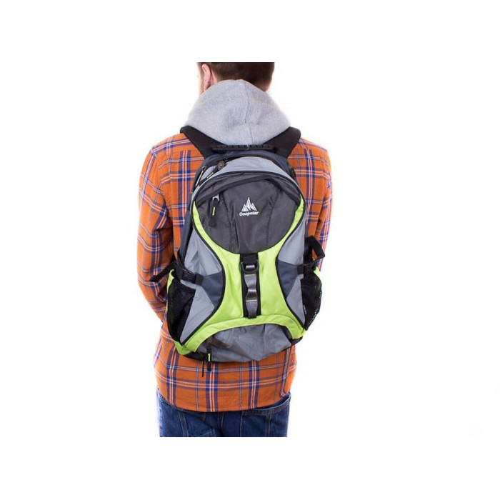 Якщо, прокинувшись вранці, Ви відчули величезне бажання покататися на роликах або велосипеді - беріть цей рюкзак і вперед. Незвичайний зовнішній вигляд рюкзака, його колір і форма – це лише частина його переваг. Ще він зручний. З ним Ви будете насолоджуватися прогулянкою, не відволікаючись ні на що. Надійні кріплення застібки не підведуть Вас навіть в самих екстремальних ситуаціях. Рюкзак володіє наступними характеристиками і властивостями: повністю вентильована і зручна м'яка спинка, м'які плечові лямки створюють додатковий комфорт при носінні; попереду на м'якому плечовому ремені - зручна кишеня на липучці для мобільного телефону; регулююча грудна стяжка зі зручним фіксатором, яка дозволяє щільно утримувати рюкзак на спині, що дуже зручно при їзді на велосипеді, скейті, роликах або тривалих походах; основне відділення для персональних речей, - на двосторонній потаємній блискавці, - з кишенею для паперів А4 або невеликого ноутбука і кишенею-сіткою на блискавці для плеєра; вихід для навушників дає можливість слухати музику в той час як плеєр добре захищений в спеціальній кишені рюкзака; ще один невеликий відсік на блискавці, всередині якого розташовані накладна кишеня на липучці і пластиковий карабін для ключів; дві бічні сітчасті кишені на резинці під пляшки з водою; нижній вхід на двосторонній потаємній блискавці і внутрішня перегородка на блискавці; можна використовувати як додатковий окремий кишеню або як збільшення літражу і швидкого доступу до потрібної речі в основному відділенні рюкзака; світловідбиваючі вставки. Система циркуляції повітря Air. Матеріал: поліестер Ripstop Polyester Oxford 600D PU. Колір: зелений, сірий. Фурнітура: Duraflex - високоякісна пластикова фурнітура виробництва одного зі світових лідерів National Molding Corporation (США). Пряжки виготовлені з особливо міцного поліаміду марки 6.6 фірми DuPont. Фурнітура бездоганно зарекомендувала себе в експлуатації за будь-яких температур і високих навантажень. Колір фурнітури: чорне срібло. Зовнішні розміри рюкзака: 26*43*16,5 см. Об'єм: 25 л. Вага: 690 р. Документи формату А4 поміщаються в рюкзак. Рюкзак упакований в поліетиленовий пакет. Гарантія: 2 роки. Країна походження торгової марки: Onepolar (Китай).