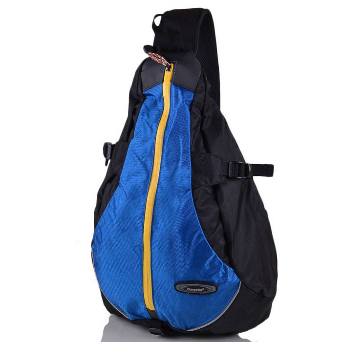 Суперстильний спортивний рюкзак на одне плече не тільки надійно збереже всі ваші речі, але і підкреслить імідж спортивного людини. Рюкзак володіє наступними характеристиками і властивостями: повністю вентильована і зручна м'яка спинка, м'яка плечова лямка створює додатковий комфорт при носінні; основне відділення - на двосторонній вертикальної блискавки; в цьому відділенні є 2 кишені на блискавках; ще одне містке відділення на вертикальної блискавки, в якому знаходиться ключниця (кишеня-сітка на блискавці і пластиковий карабін); попереду на м'якому плечовому ремені зручна кишеня на липучці для компактного мобільного телефону або для дрібниць; з зовнішньої сторони дна і боків рюкзака є регульовані ремені, які дають можливість регулювати обсяг рюкзака або кріпити додаткове обладнання; регульований поясний ремінь щільно утримує рюкзак на спині, що дуже зручно при їзді на велосипеді або тривалих походах; світловідбиваючі вставки; система циркуляції повітря Air. Матеріал: поліестер, Polyester Oxford 600D PU. Колір: синій + чорний + жовтий. Фурнітура: Duraflex - високоякісна пластикова фурнітура виробництва одного зі світових лідерів National Molding Corporation (США). Пряжки виготовлені з особливо міцного поліаміду марки 6.6 фірми DuPont. Фурнітура бездоганно зарекомендувала себе в експлуатації за будь-яких температур і високих навантажень. Колір фурнітури: чорне срібло. Зовнішні розміри рюкзака: 32*15*52 см. Обсяг: 20 л. Гарантія: 2 роки. Рюкзак упакований в поліетиленовий пакет. Виробник: Onepolar (Китай).