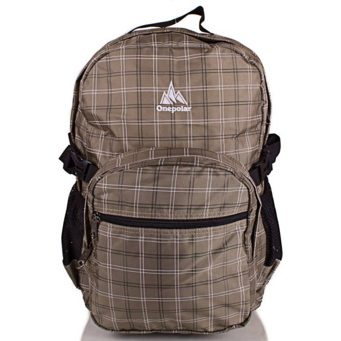 Тип конструкції: м'який рюкзак. Спинка рюкзака ущільнена. Вона прошита особливим чином, що значно покращує процес циркуляції повітря. Кількість основних відділень:1. Всередині рюкзак має місткий кишеню для ноутбука або планшета (закривається на застібку-липучку). Виріб оснащений зручними накладними бічними кишенями на спеціальних стягуючих гумках. Кишені виготовлені з сітки. На лицьовій стороні рюкзака є один велика накладна кишеня на блискавці. Всередині нього знаходиться пластиковий карабін на нейлоновий стрічці, призначений для кріплення ключів, а також органайзер для різного роду дрібних предметів (включає два великих накладних кишені, відділення для ручки або стилуса, прорізна кишеня на блискавці, кишеня для мобільного телефону або іншого портативного гаджета). На зовнішній стінці кишені є ще одну прорізну кишеню на блискавці. Виріб має бічні компресійні стяжки, які служать не тільки для регулювання об'єму рюкзака, але і для кріплення/фіксації різних предметів (наприклад, каремат або килимка для йоги). Плечові лямки мають анатомічну форму. Вони забезпечені щільною подкладой з поропласту, а їх тильна сторона виконана з сітки 3D airmesh, яка не перешкоджає вільній циркуляції повітря. Довжина лямок може регулюватися за допомогою пластикових пряжок. На одній з лямок є зручний кишеня з сітки. Також виріб має зручну тканинну ручку, за допомогою якої аксесуар можна переносити в руці або повісити на гачок або вішалку. На лямках є грудна стяжка, яка не тільки фіксує рюкзак, але і сприяє кращому розподілу ваги. Висоту і ширину грудної стяжки можна регулювати. Дно рюкзака щільне. Виріб призначений для перенесення ноутбука. Також можна використовувати в якості міського рюкзака, для нетривалих поїздок та походів вихідного дня. Матеріал: Polyester Oxford. Колір: сіро-коричневий з зеленуватим відтінком (хакі), білий, чорний, сірий. Колір металевої фурнітури: чорне срібло. Аксесуар оснащений міцною фурнітурою японської фірми YKK (фастекси, рамки, фіксатори, карабіни тощо). Деталі виготовлені з поліацетали (POM). Матеріал володіє низьким коефіцієнтом тертя, високу втомної міцністю, поєднує високу твердість і стійкість до ударних навантажень (у тому числі при низьких температурах). Зовнішні розміри рюкзака: 32*42*14 см. Об'єм: 25 л. Вага: 570 р. Виріб упаковано в поліетиленовий пакет. Документи формату А4 поміщаються в рюкзак. Країна походження торгової марки Onepolar - Китай. Гарантія: 2 роки.