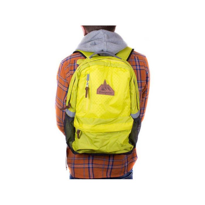 Для того, щоб виділитися з натовпу, іноді достатньо всього однієї яскравої деталі. Саме нею може стати місткий, оригінальний і барвистий рюкзак. Він дуже легкий і при цьому дуже міцний, він здатний вмістити в себе велику кількість речей. Ручки рюкзака надійно прикріплені, декоровані контрастною стрічкою. Їх довжина регулюється під потрібний для Вас розмір. Прикрашає рюкзак фірмовий логотип. Повністю вентильована і зручна м'яка спинка, м'які плечові лямки створюють додатковий комфорт при носінні. Система циркуляції повітря Air. На лицьовій стороні рюкзака є прорізній вертикальний кишеня на блискавці і накладна кишеня на блискавці. Всередині рюкзака є одне відділення, дві накладних кишені, два відділення для кулькових ручок і м'який накладна кишеня для паперів А4 або невеликого ноутбука з діагоналлю екрану 15.4". На лицьовій стороні і плечових лямках є світловідбиваючі вставкии. По боках вироби є накладні кишені-сітка на гумці для аксесуарів і пляшки з водою. Регулююча грудна стяжка зі зручним фіксатором. Для зручності основні відділення рюкзака закриваються двосторонніми блискавками. Матеріал: поліестер, Polyester Oxford Rip stopPU 600D. Колір: жовтий, сірий, чорний. Колір фурнітури: срібло. Фурнітура: Duraflex - високоякісна пластикова фурнітура виробництва одного зі світових лідерів National Molding Corporation (США). Зовнішні розміри рюкзака: 33*45*15 см. Об'єм: 25 л. Документи формату А4 поміщаються в рюкзак. Рюкзак упакований в поліетиленовий пакет. Гарантія: 2 роки. Країна походження торгової марки: Onepolar (Китай).