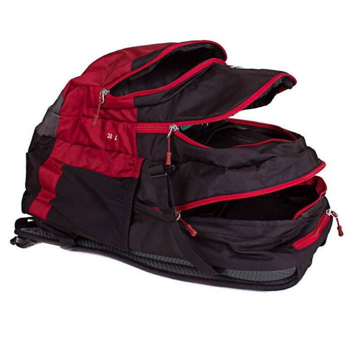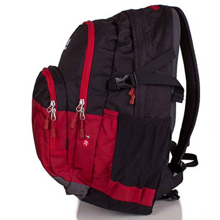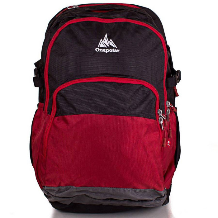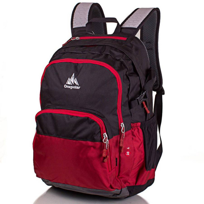 Тип конструкції: напівжорсткий рюкзак. Спинка рюкзака має спеціальну вставку з щільного, але при цьому гнучкого матеріалу. Вона відрізняється тристоронньої системою вентиляції спини (три спеціальні подушки, обтягнуті сітчастим матеріалом, утворюють канали, по яких вільно циркулює повітря, забезпечуючи ідеальну вентиляцію). Кількість основних відділень: 1. Всередині нього рюкзак має спеціальну накладну кишеню для плеєра або смартфона (з окремим зовнішнім "входом"), а також велика накладна кишеня. Кількість додаткових відділень: 1. Всередині нього знаходиться пластиковий карабін-ключниця на нейлонової стрічці, велика прорізна кишеня на блискавці, а також органайзер для різних дрібниць (включає велика накладна кишеня, маленький прорізна кишеня на блискавці, ще один накладна кишенька, два відділення для ручок, олівців або стилусів). Рюкзак оснащений двома місткими бічними накладними кишенями на гумках. Виріб має великий фронтальний накладна кишеня, який закривається за допомогою блискавки з двома собачками. Виріб має компресійні стяжки (2 бічні), які служать не тільки для регулювання об'єму рюкзака, але і для кріплення/фіксації різних предметів (наприклад, каремат або килимка для йоги). Аксесуар оснащений зручним чохлом від дощу. Дану деталь можна закріпити на рюкзаку за допомогою спеціальних кріпильних елементів, а також надійної гумки. За непотрібністю дощовик можна прибрати в призначений для нього прорізна кишеня на блискавці (розташований ближче до дна виробу). Плечові лямки мають анатомічну форму. Вони забезпечені щільною подкладой з поропласту з перфорованими ділянками, а їх тильна сторона виконана з сітчастого матеріалу, який не перешкоджає вільній циркуляції повітря. Довжина лямок може регулюватися за допомогою пластикових пряжок. Також виріб має зручну ручку, за допомогою якої аксесуар можна переносити в руці або повісити на гачок або вішалку. На лямках є грудна стяжка з еластичною вставкою, яка не тільки фіксує рюкзак, але і сприяє кращому розподілу ваги. Висоту і ширину грудної стяжки можна регулювати. Виріб можна використовувати в якості міського рюкзака, для активного відпочинку, для нетривалих поїздок та походів вихідного дня. Матеріал: Polyester Oxford. Колір: червоний, чорний, сірий. Колір металевої фурнітури: срібло. Аксесуар оснащений міцною фурнітурою японської фірми YKK (фастекси, рамки, фіксатори, карабіни тощо). Деталі виготовлені з поліацетали (POM). Матеріал володіє низьким коефіцієнтом тертя, високу втомної міцністю, поєднує високу твердість і стійкість до ударних навантажень (у тому числі при низьких температурах). Зовнішні розміри рюкзака: 29*44*16 см. Об'єм: 28 л. Вага: 840 р. Основне і додаткове відділення рюкзака закриваються за допомогою блискавки з двома собачками. Виріб упаковано в поліетиленовий пакет. Документи формату А4 поміщаються в рюкзак. Країна походження торгової марки Onepolar - Китай. Гарантія: 2 роки.
