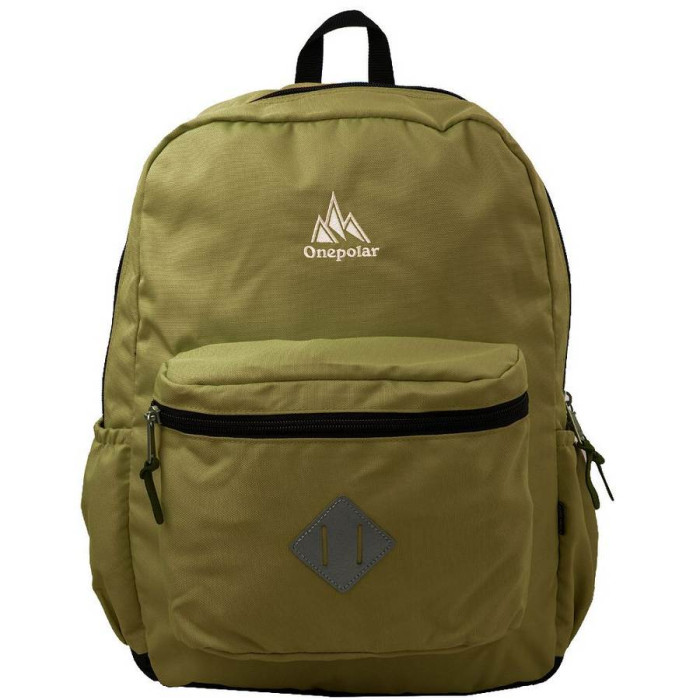 Зовнішні розміри рюкзака: 32 х 40 х 14 см. Обсяг без урахування кишень: 18 л. Матеріал: тканину. Колір: зелений. Колір фурнітури: срібло. Кількість основних відділень: 1. На лицьовій і тильній сторонах розташоване по 1 кишені на блискавці. Виріб має бічні кишені. Плечові лямки мають анатомічну форму. Вони забезпечені щільною підкладкою з поропласту, а їх тильна сторона виконана з сітки 3D airmesh, яка не перешкоджає вільної циркуляції повітря. Довжина лямок може регулюватися за допомогою пластикових пряжок. Спинка рюкзака ущільнена прошарком з пеноматериала. Також виріб має зручну щільну петлю, за допомогою якої аксесуар можна переносити в руці або повісити на гачок або вішалку. Рюкзак закривається за допомогою блискавки. Виріб упаковано в поліетиленовий пакет. Документи формату А4 поміщаються в рюкзак. Країна походження торгової марки Onepolar - Китай. Гарантія: 1 місяць.