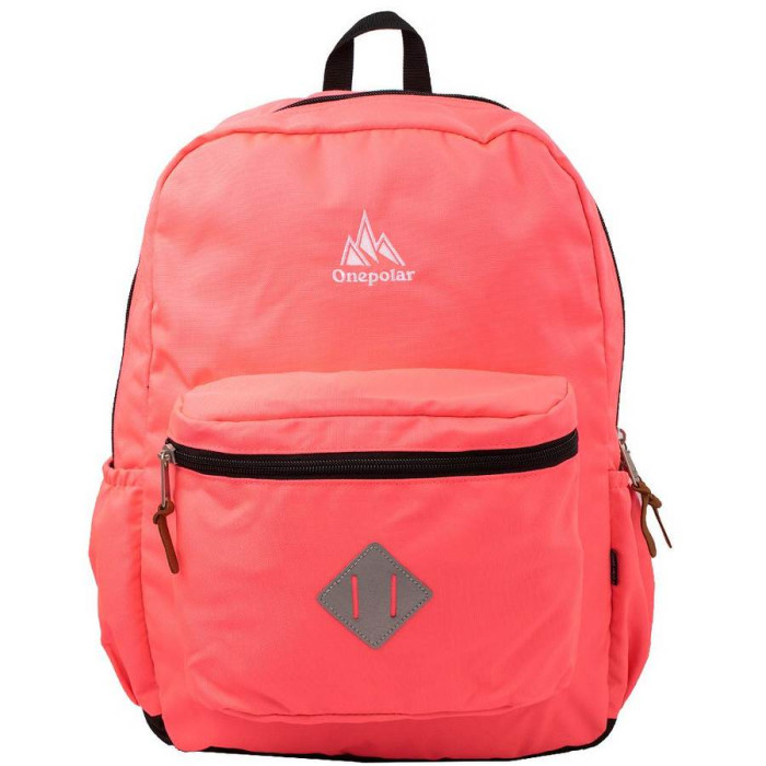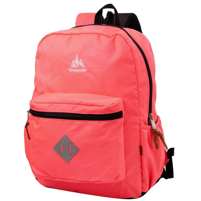 Зовнішні розміри рюкзака: 32 х 40 х 14 см. Обсяг без урахування кишень: 18 л. Матеріал: тканину. Колір: рожевий. Колір фурнітури: срібло. Кількість основних відділень: 1. На лицьовій і тильній сторонах розташоване по 1 кишені на блискавці. Виріб має бічні кишені. Плечові лямки мають анатомічну форму. Вони забезпечені щільною підкладкою з поропласту, а їх тильна сторона виконана з сітки 3D airmesh, яка не перешкоджає вільної циркуляції повітря. Довжина лямок може регулюватися за допомогою пластикових пряжок. Спинка рюкзака ущільнена прошарком з пеноматериала. Також виріб має зручну щільну петлю, за допомогою якої аксесуар можна переносити в руці або повісити на гачок або вішалку. Рюкзак закривається за допомогою блискавки. Виріб упаковано в поліетиленовий пакет. Документи формату А4 поміщаються в рюкзак. Країна походження торгової марки Onepolar - Китай. Гарантія: 1 місяць.