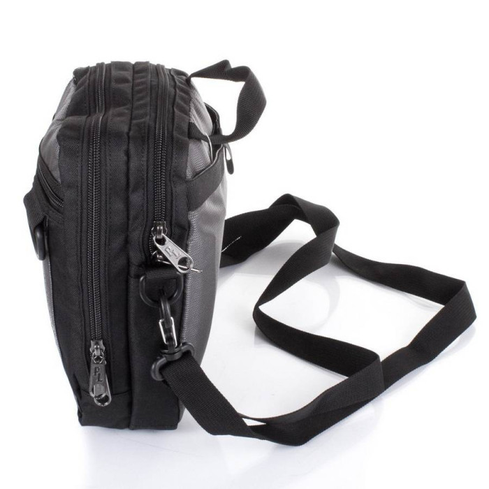 Кількість основних відділень: 2. Сумка має дві прорізних кишені на блискавці (один з них - сітка), накладна кишеня, органайзер для різного роду дрібниць (включає п'ять накладних кишень, прорізна кишеня на блискавці, кріплення для олівців, ручок і стилусів), карабін -ключниці. На лицьовій стороні сумки є прорізна кишеня на блискавки. Біля нього є спеціальне пластикове кріплення для підвісних предметів. На тильній стороні сумки є один кишеню на липучці. Сумка має незнімну ручку для перенесення моделі в руці. У комплект до сумки додається знімний плечовий ремінь. Його довжина може регулюватися за допомогою пряжки від 91 до 175 см. Аксесуар придатний для носіння на плечі і через плече. Матеріал підкладки: тканина чорного кольору. Матеріал виробу: поліестер "Оксфорд". Колір: сірий, чорний. Колір фурнітури: чорне срібло. Розміри (X * Y * Z): 16 * 23 * 6,5 см. Обсяг: 8 л. Всі відділення сумки закриваються за допомогою блискавок. Документи формату А4 не поміщаються в аксесуар. Виріб упаковано в поліетиленовий пакет. Країна походження торгової марки Onepolar - Китай. Гарантія: 2 роки. Увага! Залежно від налаштувань монітора відтінок виробу може відрізнятися від дійсності. Будь ласка, зробіть перевірку кольору на декількох комп'ютерах або уточніть цю інформацію у наших менеджерів.
